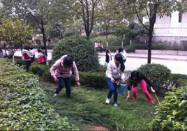 2014年3月12日,数学与统计系2013级员工在辅导员张远秀的带领下,开展了校园绿化带净化志愿活动。