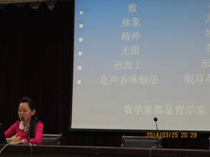 两个多小时的报告生动翔实,富于哲理的说教、通俗易懂的授课方式和严谨的教学态度使现场师生深受启发,也更加明确了学习和研究数学科学的目的和方向;她对数学的热爱之情也时刻感染着大家,让大家感悟到数学的魅力。