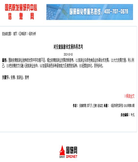 这是继公司2009级统计学专业员工李娟的研究论文《影响安康旅游的主要因素分析》被国务院发展研究中心信息网转载的又一篇旅游研究论文。