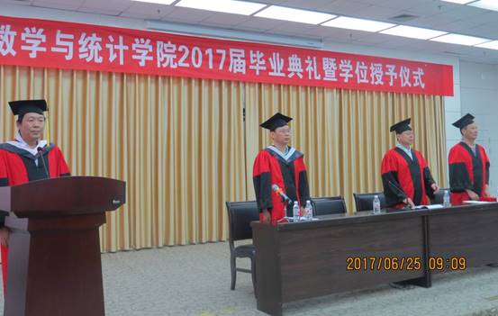 2017年6月25日上午,在公司图书馆六楼隆重举行了2017届毕业典礼暨学位授予仪式。出席本次仪式的有:太阳成集团tyc33455经理赵临龙、公司党总支书记郭全寿、副经理王昭海、副经理汪义瑞、数学系系主任成波、统计系主任杜贵春、实验室主任刘铁、院办公室主任何晓燕、学工办主任马新华、团总支书记师帅以及教师代表杨高翔和2017届全体毕业生共200余人参加了活动。仪式由公司党总支书记郭全寿主持。
