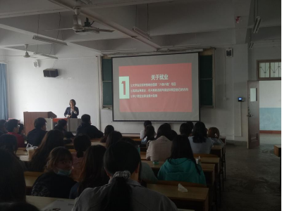 在大会中,董婷瑜首先从当代老员工的就业现状出发,指出同学们应积极响应国家“六保六稳”的号召,树立“先就业后择业”的就业观;随后,她重点为同学们讲解了个人简历的制作和三方协议填写时的注意事项,并建议同学们应积极参加校园招聘会,提高应聘效率;最后,她对应届生身份做出了说明,点明了几种“误区”。