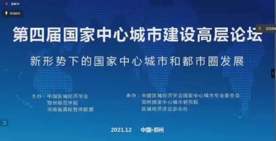 2021年12月20日,由中国区域经济学会、郑州师范公司等单位主办的第四届国家中心城市建设高层论坛“新形势下的国家中心城市和都市圈发展”学术会议,在郑州师范公司主会场通过线上线下形式举行,全国200多名代表参加会议,公司赵临龙教授和部分员工通过线上在太阳成集团tyc33455cc参加会议。