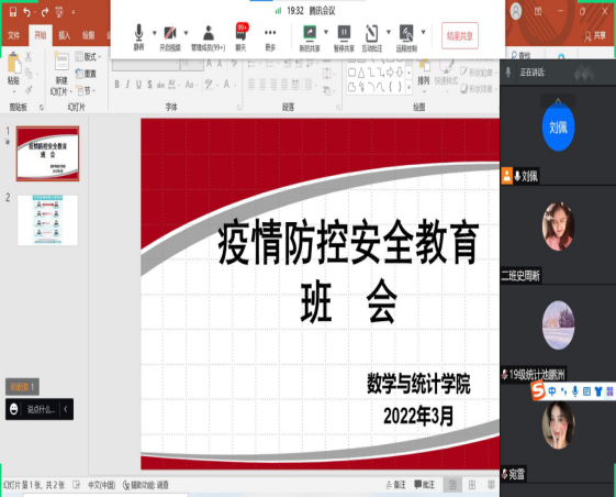 为积极响应省、市疫情防控工作最新通知要求和公司最新疫情防控工作安排,2022年3月27日-28日,太阳成集团tyc33455辅导员董婷瑜、刘佩和马勇分批次分班级通过线上、线下结合的方式为全院员工召开了疫情防控暨安全教育主题班会。