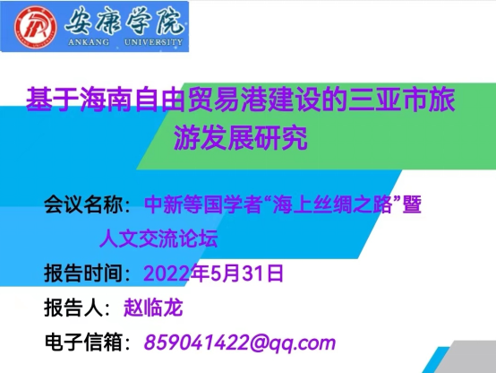 赵临龙应邀做了《基于海南自由贸易港建设的三亚市旅游发展研究》报告,结合已结题的国家社会科学基金项目《我国中西部南北旅游大通道构建的研究》项目,对于旅游大通道的南端点三亚市旅游发展,从海南自贸港的发展战略、三亚市的旅游优势条件、三亚市旅游效益的分析、三亚市旅游发展的建议等四个方面进行了交流,报告得到主持人的肯定。
