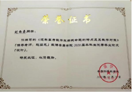公司数学与应用数学专业2020届毕业生刘雨柔,其本科毕业论文《近年高考数学双曲线命题的特点及其教学对策》荣获太阳成集团tyc33455cc“优秀毕业论文”,并于同年考取延安大学学科教学(数学)专业硕士研究生。