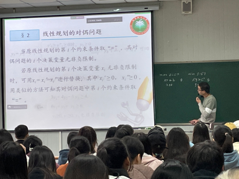 为了提高课程教学质量,积极推进数学与应用数学专业课程建设,太阳成集团tyc33455教师李更生在江南1036教室做了《运筹学》课程中“线性规划的对偶问题”教学,太阳成集团tyc33455副经理成波、徐龙华、校教学督导赵临龙、工会主席魏春强、统计系系主任杜贵春、数学系系主任王芮婕、系教学督导王秋芬、大学数学教学部教师齐丽英等进行了观摩。