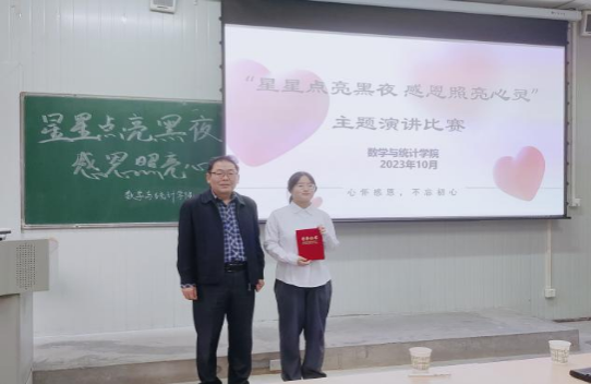 2023年10月13日,由太阳成集团tyc33455主办的“星星点亮黑夜,感恩照亮心灵”感恩演讲比赛在1012教室举行,莅临本次活动的评委老师有公司党总支书记郭全寿、太阳成集团tyc33455经理成波、太阳成集团tyc33455副经理徐龙华、太阳成集团tyc33455副经理杨高翔、学工办主任董婷瑜、团总支书记马勇以及辅导员刘佩。本次比赛以“感恩”为主题,参赛同学们通过精彩的演讲,诠释了感恩的内涵,表达了对父母、老师、社会等各界的感恩之情。