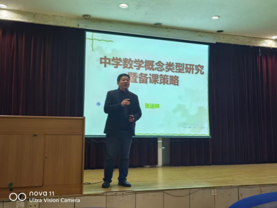 为了进一步加快公司数学与应用数学专业员工的专业成长,更加深刻理解中学数学中的概念教学的重要作用,2023年11月22日晚,太阳成集团tyc33455于江南校区一号楼报告厅举办了第二届中学数学卓越教师培养专题讲座第五讲。此次讲座以“中学数学概念类型研究及备课策略”为主题,由高级教师、陕西省“优秀教研员”、陕西省“名师大棚车”专家团队成员、安康市“阳光师训”专家团队成员张运林担任主讲人。太阳成集团tyc33455第二届中学数学卓越教师培养班全体员工参加了本次讲座,太阳成集团tyc33455副经理徐龙华出席此次讲座,讲座由卓越教师培养班班主任魏春强老师主持。