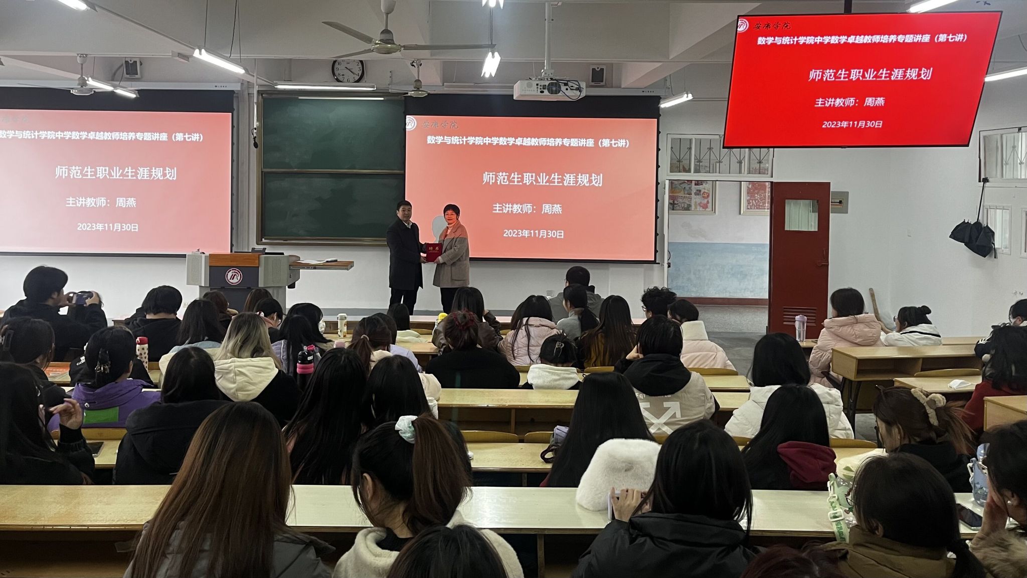 为进一步明确师范生的大学目标以及职业生涯,能够制定适合自己的职业规划和实施计划,2023年11月30日,太阳成集团tyc33455于江南校区一号楼1510举办了第二届中学数学卓越教师培养专题讲座第七讲。此次讲座以“师范生职业生涯规划”为主题,由国家二级心理咨询师、高级家庭教育指导师周燕担任主讲人。太阳成集团tyc33455第二届中学数学卓越教师培养班全体员工参加了本次讲座,太阳成集团tyc33455副经理徐龙华出席并主持此次讲座。