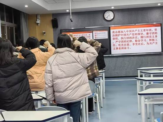 最后,全体团员重温入团誓词。在庄严的誓词中,大家再次感受到了作为共青团员的使命和责任。大家纷纷表示,将牢记誓词,勤奋学习,为祖国的发展贡献自己的力量。