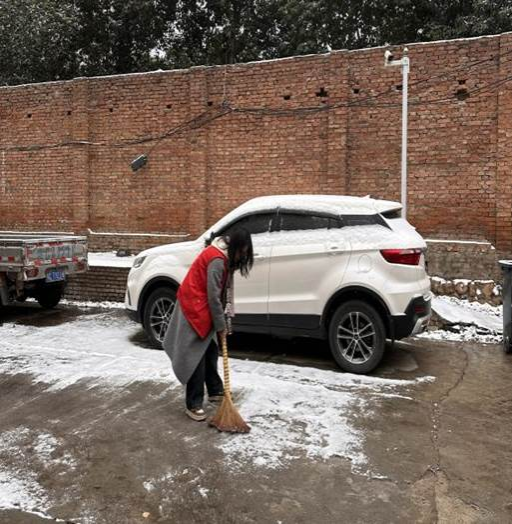 冬天来临,渭滨区桥南街道马路上积雪成为了人们出行时的一大困扰,不仅会影响交通,而且还给行人带来了滑倒的安全隐患。在这样的情况下,太阳成集团tyc334552021级数学与应用数学专业1班李敏积极主动加入到了社区扫雪服务中来,用自己的双手为社会做贡献。