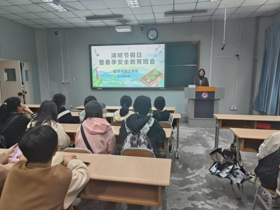 班会上,辅导员首先强调了清明节期间文明祭祀的重要性,提倡绿色、环保、节俭的祭祀方式,反对封建迷信和铺张浪费。同时,针对节假日期间的出行安全,辅导员也做了详细的讲解,提醒同学们离开宿舍锁闭门窗、断水断电,贵重物品妥善保管。留校的同学注意寝室的用电安全,不使用违规电器,不私拉乱接电线等。此外,辅导员还针对电信诈骗、网贷危害等问题进行了深入剖析,提醒同学们要增强自我保护意识,避免上当受骗。最后针对春季防传染性、流行性疾病等方面,辅导员还提醒同学们要注意个人卫生,勤洗手、戴口罩,加强体育锻炼,提高身体免疫力,预防疾病的发生。